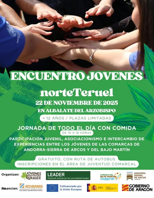 El próximo 22 de noviembre, Albalate del Arzobispo será el punto de encuentro de la juventud rural de las comarcas de Andorra-Sierra de Arcos y Bajo Martín. Esta jornada, dirigida a jóvenes a partir de 12 años, tiene como objetivo fomentar la participación juvenil, el asociacionismo y el intercambio de experiencias entre los asistentes. Con un programa de actividades que se desarrollará de 10:00 a 18:00 horas, incluirá una comida para todos los participantes y será completamente gratuita, incluyendo incluso una ruta de autobús para facilitar el desplazamiento.