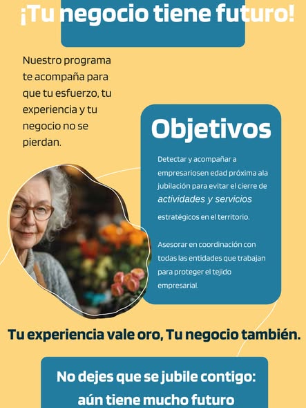 El programa tiene un doble objetivo: por un lado, acompañar a empresarios y empresarias próximos a la jubilación para que su negocio, experiencia y esfuerzo no se pierdan; y por otro, facilitar el traspaso a nuevos emprendedores interesados en continuar con el legado. Con el objetivo de mantener el tejido económico, los servicios esenciales y fijar población en el territorio.