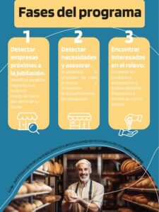 El programa funciona en tres fases: detectar negocios en riesgo, asesorar de forma personalizada y conectar a vendedores con posibles sucesores. Está dirigido tanto a personas con un negocio próximo a la jubilación como a interesados en emprender mediante un relevo.