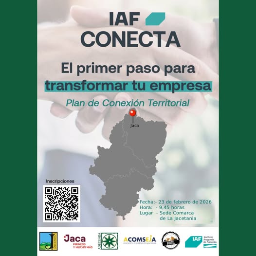 Jaca acoge una jornada clave para conectar las empresas de la Jacetania con nuevas oportunidades El próximo 23 de febrero, la sede de la Comarca de la Jacetania en Jaca será el escenario de una nueva edición del Plan de Conexión Territorial, una iniciativa impulsada por el Instituto Aragonés de Fomento (IAF) que busca acercar los servicios públicos de apoyo empresarial al tejido productivo de la zona. La jornada cuenta con la colaboración de ADECUARA, el Ayuntamiento de Jaca, la Comarca de la Jacetania, ACOMSEJA Jaca y la Asociación EresBrutal, entidades que trabajan conjuntamente para fomentar el desarrollo económico del medio rural a través del acompañamiento a las empresas del territorio.