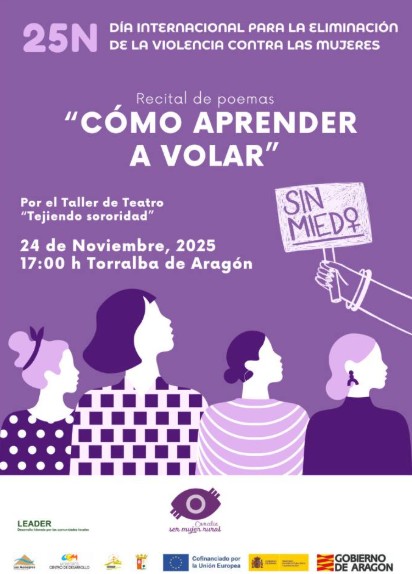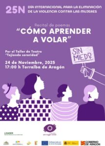 Esta actividad se suma al compromiso social de CEDER Monegros, que este lunes 24 de noviembre organiza en el Centro Social de Torralba de Aragón un acto contra la violencia hacia las mujeres, con intervenciones institucionales, lectura de manifiesto con motivo del 25-N y el recital poético «Cómo aprender a volar» del proyecto «Tejiendo Sororidad».